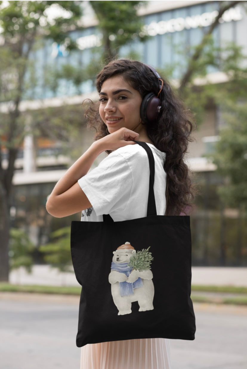Customizable Christmas Polar Bear Black Tote Bag