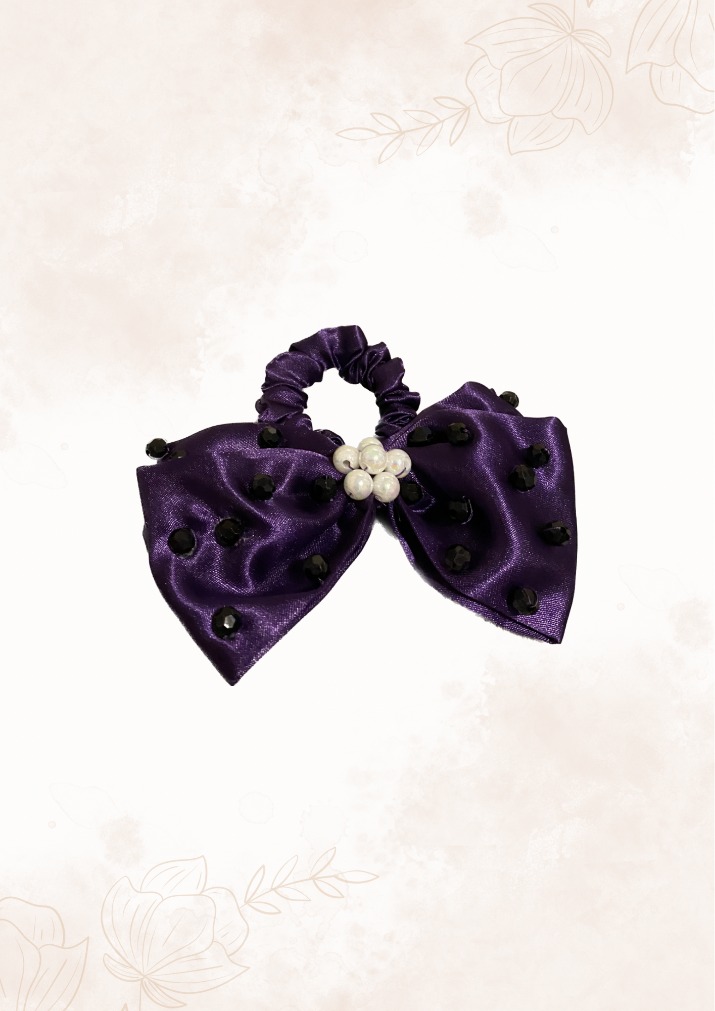 Purple double layered hair ribbon beaded tie